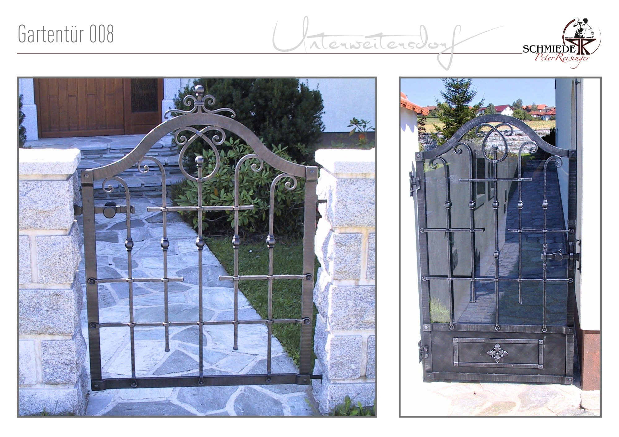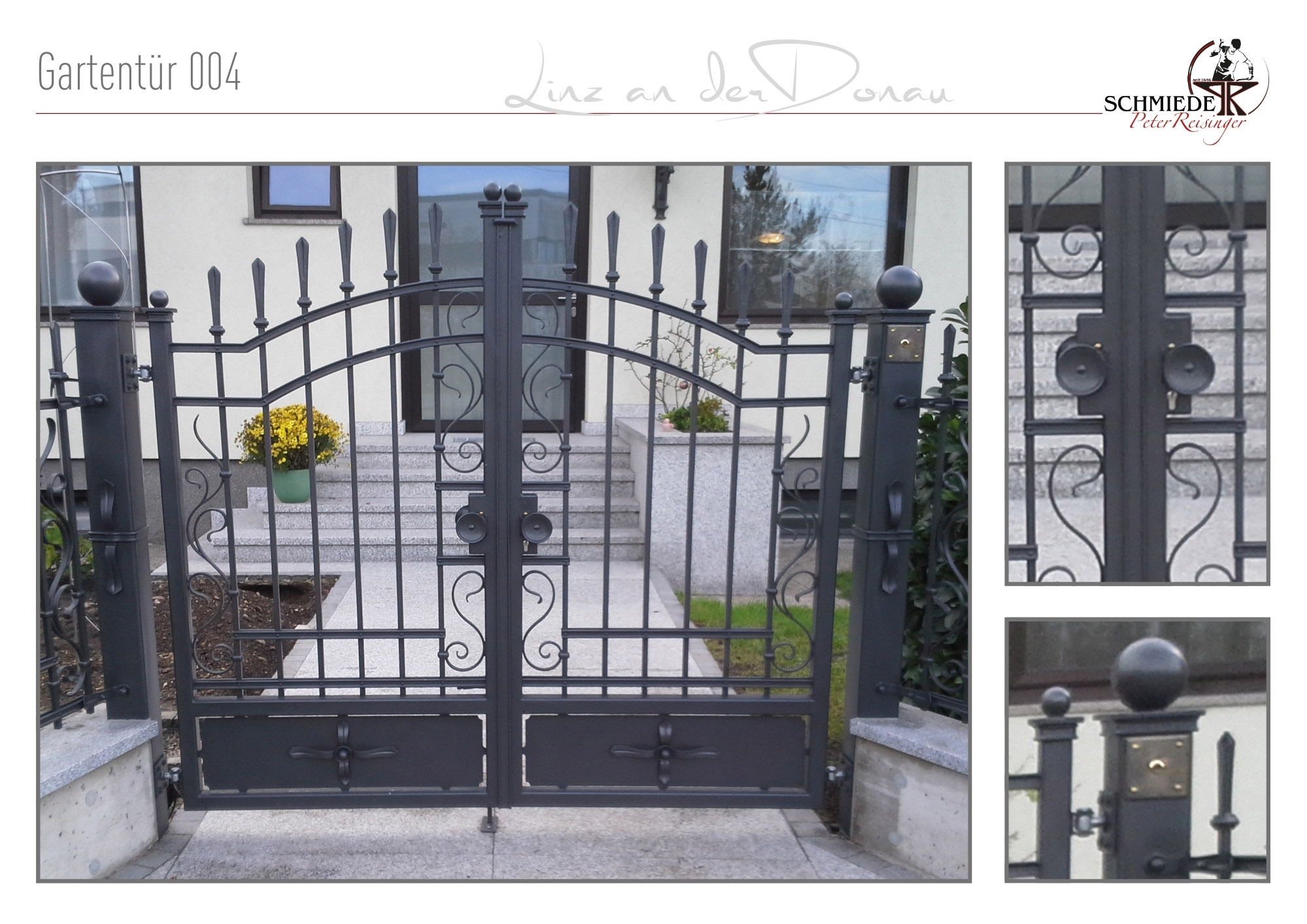 Wir gestalten und schmieden für Sie Gartentüren, die sich perfekt in Ihren Hauszugang einfügen. Ob individuelle Designs oder Standardmodelle – von historisch aufwändig über modern, zeitlos, schlicht, blumig oder elegant –, gemeinsam verwandeln wir Ihr Zuhause in einen Ort, an dem Schönheit und Sicherheit Hand in Hand gehen!